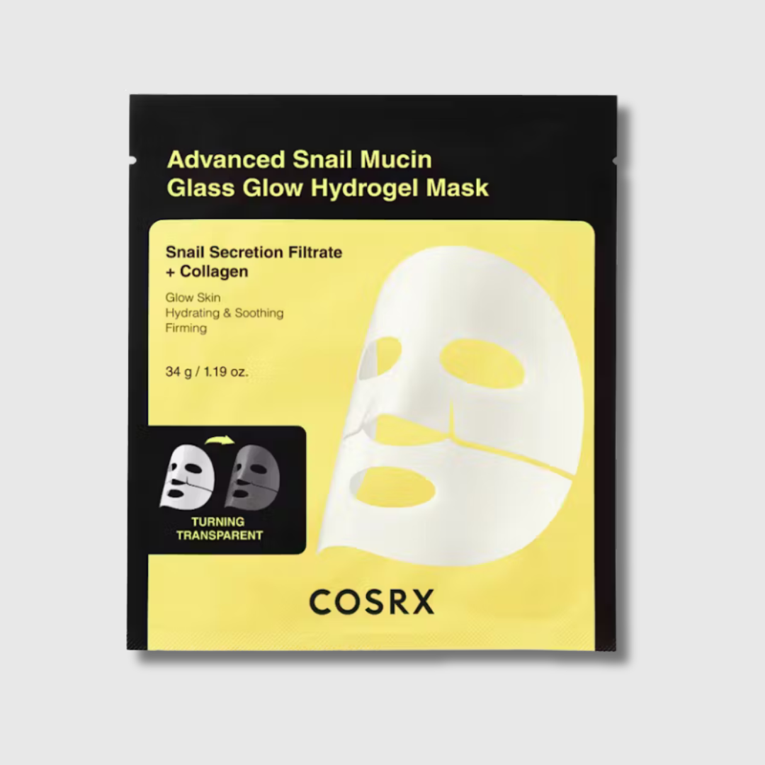 La Mascarilla de Hidrogel con Brillo de Vidrio con Mucina de Caracol Avanzada de COSRX es una innovadora mascarilla de hidrogel con 35,000 ppm de mucina de caracol, diseñada para revitalizar, hidratar intensamente e iluminar la tez. Con su textura fresca y efecto segunda piel, esta mascarilla se adapta perfectamente a las curvas del rostro para brindar un cuidado concentrado, a la vez que calma y repara la piel dañada o apagada. Deja la piel suave, tersa, visiblemente renovada y sutilmente luminosa, como el cristal.