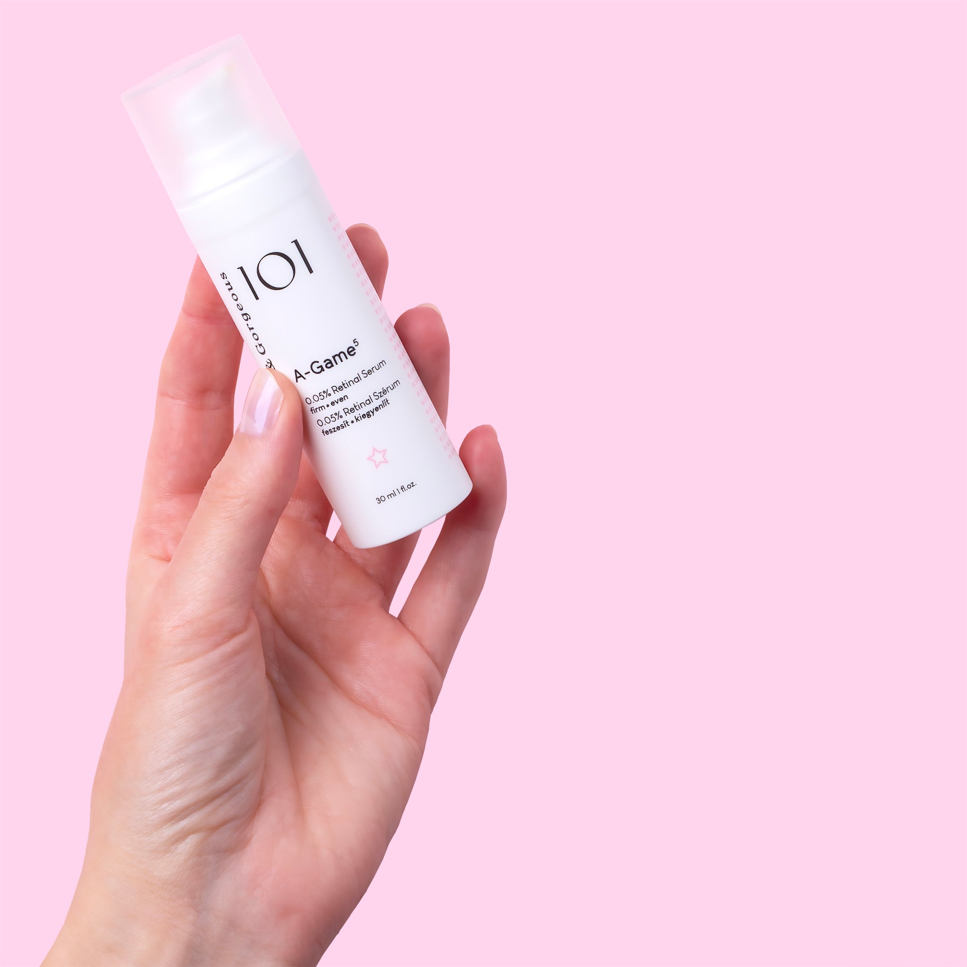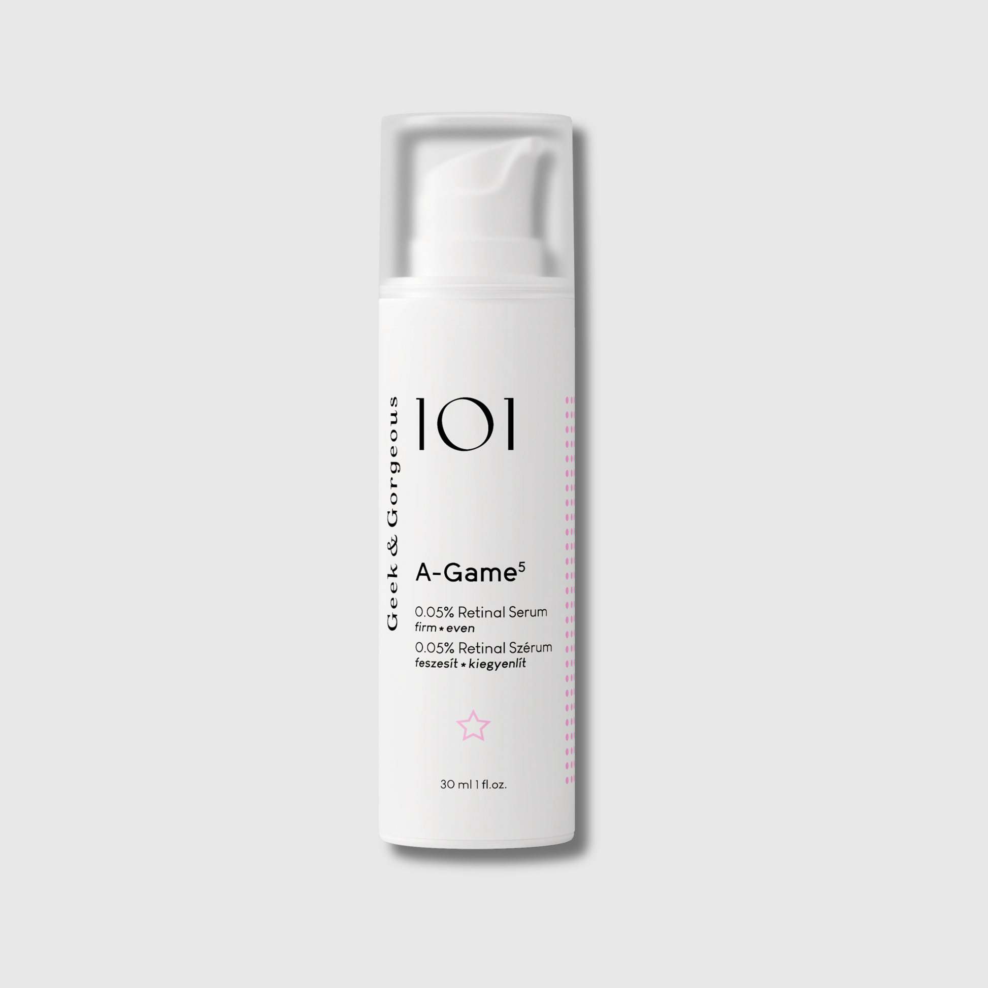 A-Game 5 es un sérum a base de retinal, una molécula del grupo de los retinoides, a menudo considerada el "hermano mayor" del retinol. A diferencia del retinol, que requiere dos pasos de conversión para activarse, el retinal solo requiere uno. Se estima que su conversión a ácido retinoico es 10 veces más rápida que el retinol, y A-Game 5 destaca por su notable eficacia.