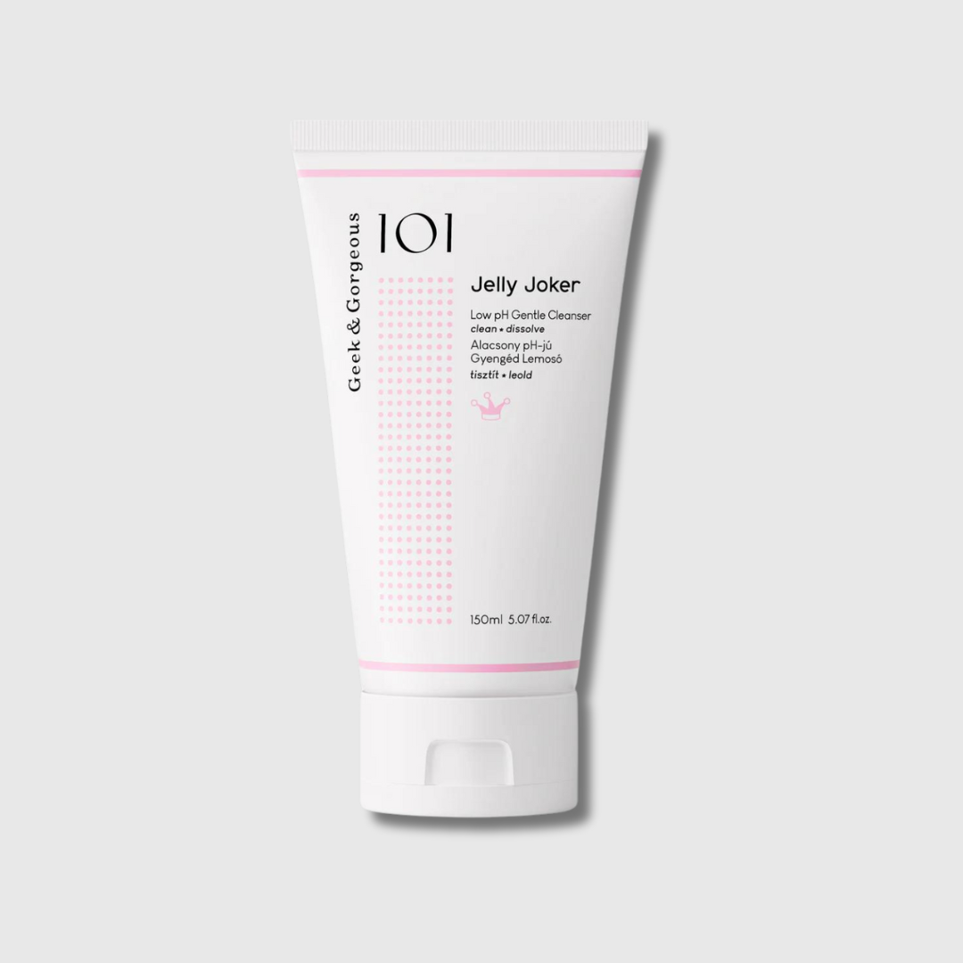 El "Jelly Joker" es un gel limpiador sedoso y rico, diseñado para limpiar la piel en profundidad sin resecarla ni alterar la barrera cutánea. Gracias a dos tensioactivos suaves pero eficaces, este limpiador es apto para todo tipo de piel y necesidades, disolviendo incluso el maquillaje soluble en agua sin irritar los ojos. Su pH bajo (~4,8-5,4) lo convierte en un limpiador versátil y agradable.
