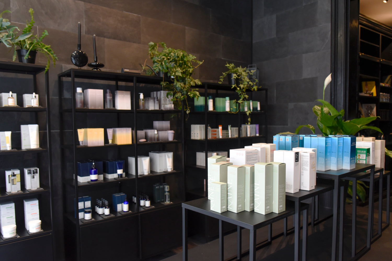 Dans un cadre épuré et sophistiqué, élégamment habillé de pierres noires profondes et sublimé par un plafond orné de feuilles d'argent, ce premier espace incarne l'avant-garde et l'innovation. C'est ici, que notre sélection de cosmétiques faites avec passion et expertise prend place. Chaque détail a été pensé pour offrir une expérience moderne, où luxe et minimalisme se rencontrent.